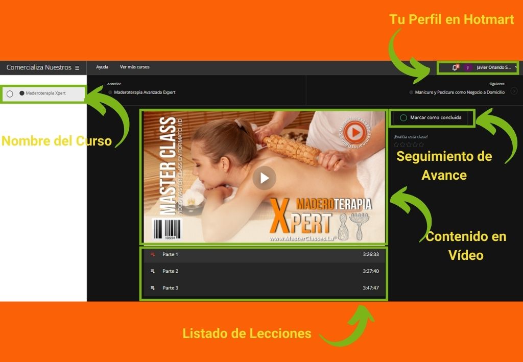 Así se ven las Clases Online, incluso puedes verlas desde tu celular por medio de la App Oficial de Hotmart (HOTMART SPARKLE).